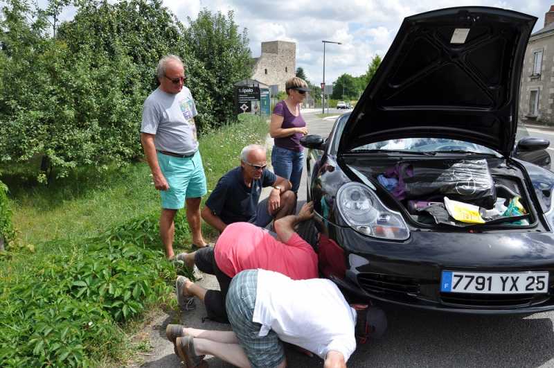 Ø première panne immobilisante l’après-midi. Et oui, les freins du véhicules d’outre-rhin ont une fâcheuses tendance à avaler les gravillons, ce qui perturbe un tantinet le freinage si l’on ne s’arrête pas pour faire le nettoyage !!!!